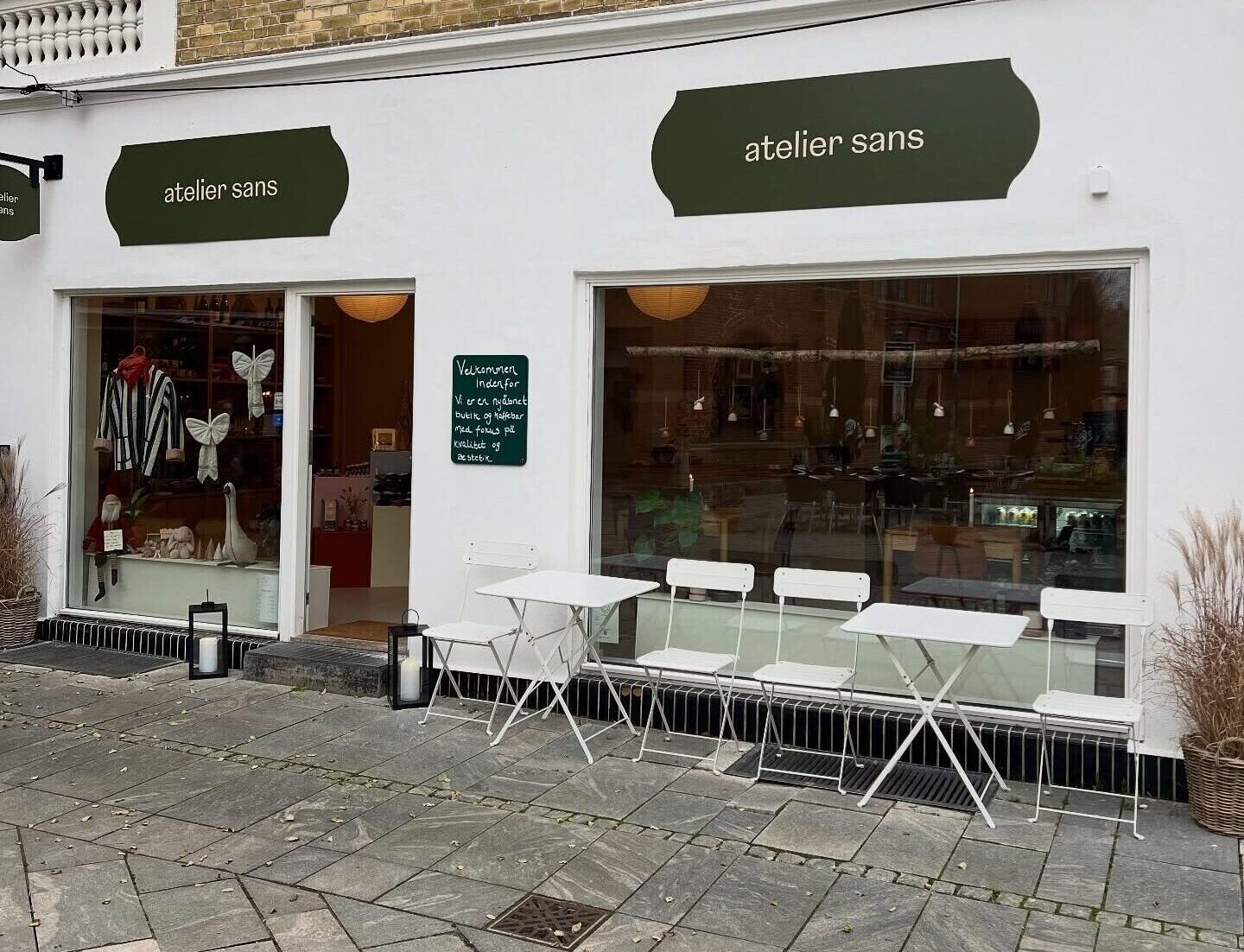 Men Atelier Sans handler ikke kun om indkøb. Det er også et sted, hvor man har lyst til at blive hængende – med plads til nærvær, ro og hyggelige samtaler.